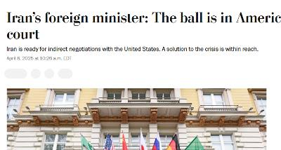 Islamic Republic of Iran minister oif foreign affairs updated his X account declaring: Mark my words: Iran prefers diplomacy but it knows how to defend itself. link: https://x.com/araghchi/status/1909637900045517234