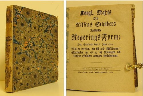 نسخه ای از قانون نظام حکوت(Regeringsformen) سوئد که در کتابخامه اپسالا نگهداری می شود - منتشر شده در سال 1809